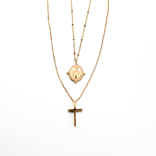 Collier double croix et médaillon