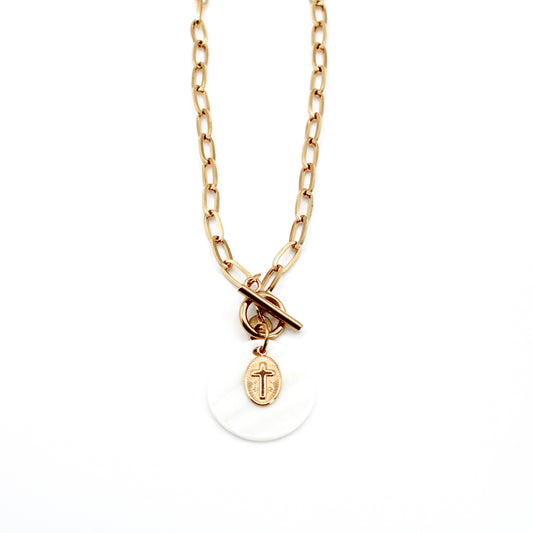 Collier pendentif nacre et croix